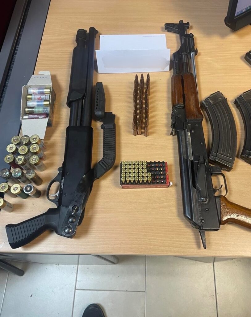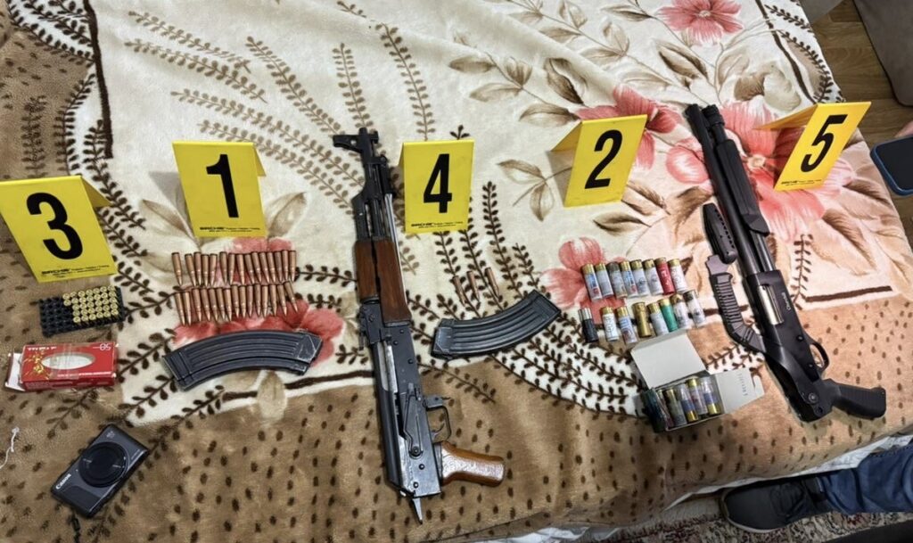 “Po ashtu, gjatë kontrollit janë gjetur dhe sekuestruar dy armë zjarri, si dhe municion”, njoftoi PK-ja.