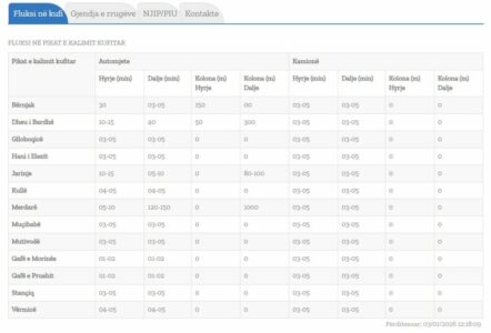 Qendra Kombëtare për Menaxhim Kufitar ka përditësuar të dhënat, duke njoftuar se është rritur koha e pritjeve në disa pika kufitare për të dalë nga Kosova, e në disa ka shënuar rënie.