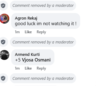 Siç shihet edhe në pamjet nga live-i, në seksionin e komenteve shfaqet mesazhi “Comment removed by a moderator”, duke treguar se një nga komentet është larguar nga moderatorët e faqes gjatë transmetimit.